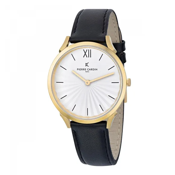 Introducing the Pierre Cardin® Analogue 'Pigalle Plissée' Unisex's Watch CPI.2005, a perfect blend of style and functionality for those who appreciate the finer things in life. Pierre Cardin, a name synonymous with elegance and innovation, has been a beacon of high fashion since the late 20th century. This iconic brand effortlessly marries tradition with modern design, creating pieces that not only complement outfits but also help to define personal style. The craftsmanship is top-notch, ensuring that each watch is a statement piece that can be worn on multiple occasions, from casual outings to formal gatherings. The Pigalle Plissée from Pierre Cardin is designed with a casual flair that suits a diverse array of tastes, making it truly unisex. Its elegant gold-toned round case, measuring 40mm in diameter and just 6.55mm thick, is crafted from durable stainless steel, providing both strength and style. The mineral glass dial window protects a pristine white face, marked with minimalist hour markers, ensuring readability while adding to the sophisticated look. This watch runs on a reliable quartz movement, promising precision and reliability with every tick. Comfort is paramount, and this model features a black leather band that measures 21cm in length and 18mm in width, secured with a classic buckle clasp. The band not only fits snugly on the wrist but also enhances the overall aesthetic of the timepiece. With an ATM rating of 3, this watch is splash-proof, making it suitable for everyday wear without the worry of it being damaged by light exposure to water. The elegant design mixed with practical functionalities makes the Pierre Cardin Pigalle Plissée a watch that can easily transition from day to night, proving its versatility.