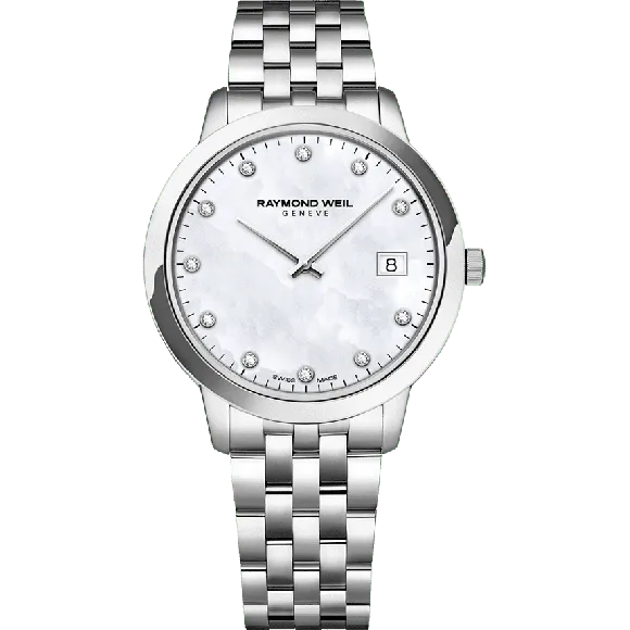 Raymond Weil stands as a beacon of Swiss watchmaking, epitomizing luxury, elegance, and timelessness. Founded in the land of unparalleled watch craftsmanship, this brand has cultivated a legacy of producing exquisite timepieces that blend classic design with contemporary innovation. The foundation of Raymond Weil is built upon an unwavering commitment to quality, precision, and attention to detail. Each collection is a tribute to the brand's dedication to excellence, resonating with a clientele that admires watches not just as timekeepers, but as a reflection of their personal style and sophistication. In a Raymond Weil timepiece, the meticulous Swiss engineering is passionately interwoven with artistic expression to create an object of beauty that transcends mere functionality.Introducing Raymond Weil® Analogue 'Toccata' Women's Watch 5385-ST-97081