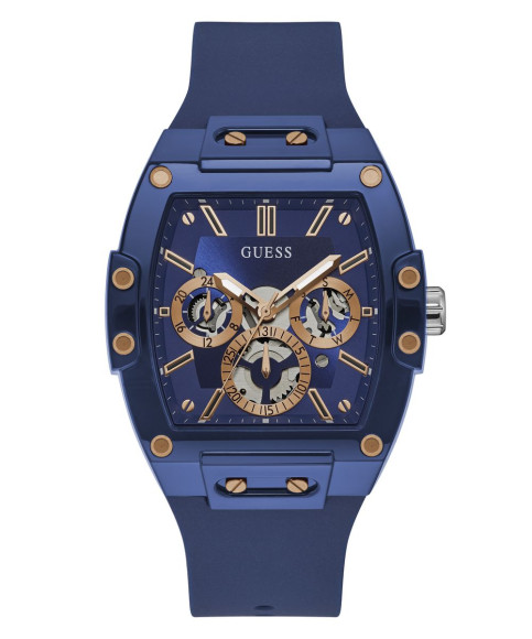 Introducing the Guess® Multi Dial 'Phoenix' Men's Watch GW0203G7, a striking representation of modern watchmaking that effortlessly merges functionality with style. Designed for the discerning man, this timepiece is not just an accessory; it's a statement. The Phoenix model showcases a unique tonneau case crafted from durable resin, ensuring it withstands the rigors of daily wear while remaining lightweight and comfortable on the wrist. The stunning blue color of the case is complemented by a vibrant blue dial that features multiple sub-dials, adding a sophisticated charm to its design. The watch also includes a calendar function that displays day and date, enhancing its practicality for everyday use. The blue silicone band offers flexibility and durability, making it perfect for any activity, whether you're at work or enjoying a weekend adventure. With a length of 21 cm and a width of 26 mm, it provides a snug fit that feels both secure and stylish. The watch is designed with a 41.5 mm case diameter, ensuring a striking presence on the wrist, while the 5 bars of water resistance mean you can wear it confidently in various environments. This watch is equipped with precise quartz movement, promising reliable timekeeping that is essential in today's fast-paced world. By choosing the Phoenix, you're not just selecting a watch, but embracing a lifestyle that values quality and style.Shop Guess GW0203G7 at Ormoda