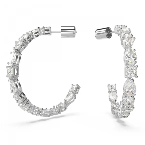 Introducing Swarovski® 'Mesmera' Women's Base Metal Hoop Earrings - Silver 5672834
