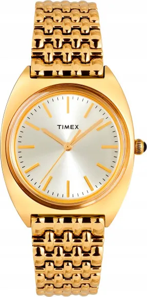 The Timex® Analogue 'Milano' Women's Watch TW2T90400 is an elegant piece that seamlessly mixes sophistication with functionality. Crafted with attention to detail, this exquisite timepiece is perfect for the modern woman who appreciates both style and reliability. The round case, made of durable stainless steel, boasts a radiant gold hue that catches the eye without being overly flashy. With a diameter of 33mm and a thickness of just 9mm, it offers a dainty and refined silhouette that complements any wrist. The gold dial, protected by mineral glass, offers a beautiful backdrop for the sleek hands and markers, ensuring readability while maintaining a touch of elegance. The watch operates on quartz movement, known for its precision, guaranteeing you stay punctual in style. Designed with your daily needs in mind, the watch withstands water pressure up to 5 bars, making it suitable for everyday wear, whether at a classy lunch or a more casual outing. The gold stainless steel band, measuring 19cm in length and 17mm in width, adds a luxurious touch. The deployment clasp ensures a secure fit, allowing for easy on-and-off without compromising on style. The overall weight of 87 grams contributes to its comfortable wearability, making it an ideal accessory for any occasion. Whether worn alone or paired with other jewelry, the Timex® Analogue 'Milano' Women's Watch is a versatile addition to any collection, perfect for enhancing your personal style. Shop Timex TW2T90400 at Ormoda