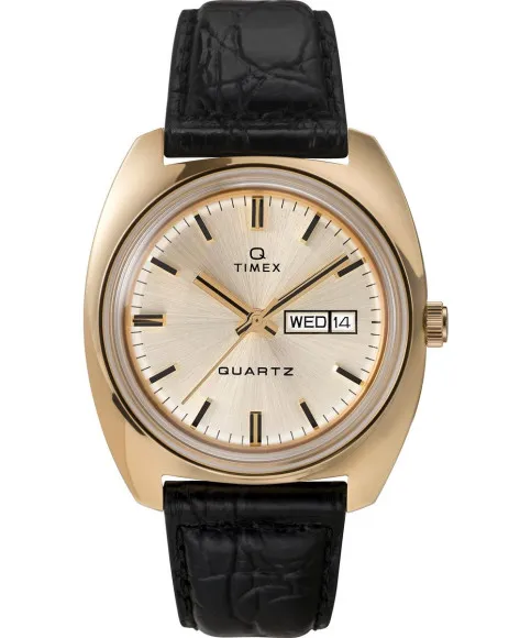 The Timex® Analogue 'Q Reissue' Women's Watch TW2U87800 is a striking blend of retro elegance and modern design. With a 38mm round case crafted from durable stainless steel and finished in a stunning gold hue, this watch is sure to turn heads. The luxurious gold dial, protected by mineral glass, exudes sophistication, complemented by a practical day-date display that enhances its functionality. This exquisite timepiece is designed for the discerning woman who appreciates both style and substance. The watch promises reliability with its quartz movement, ensuring that you are always on time for your important appointments or social gatherings. The black leather band adds a touch of classic charm, measuring 19cm in length and 19mm in width, while featuring a secure buckle clasp for ease of wear. This combination of materials and colors allows the watch to transition seamlessly from day to night, making it a versatile accessory for any occasion. With a case thickness of 14mm and a lug-to-lug height of 42mm, it fits comfortably on the wrist without compromising on style. The watch is water-resistant up to 5 bars, providing peace of mind whether you find yourself at a garden party or by the poolside. The Timex® Analogue 'Q Reissue' effortlessly combines timeless beauty with everyday practicality, reflecting a sense of individuality and grace that every woman deserves.