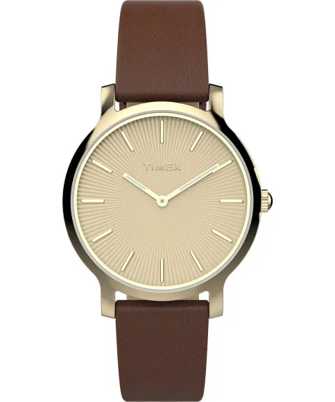 Introducing the Timex® Analogue 'Transcend' Women's Watch TW2V67000, a stunning combination of elegance and practicality designed for the modern woman. Crafted by Timex, a brand synonymous with timeless quality since its inception, this watch elevates any outfit while keeping you effortlessly on time. The rich gold-tone case, round in style, boasts a diameter of 34mm and a delicate 6mm thickness, making it an elegant accessory perfect for both day and night wear. The mineral glass dial window protects the shimmering gold dial, ensuring that this watch not only looks fabulous but is also durable enough for everyday use. The sophisticated brown leather band, measuring 19cm in length and 16mm wide, provides a comfortable fit and enhances the watch's overall aesthetic. Secured with a reliable buckle clasp, you can wear it for extended periods with ease and confidence. Designed to withstand wet conditions, this beauty is water-resistant up to 3 bars, making it suitable for light splashes, but not recommended for swimming or bathing. Weighing just 28 grams, it feels light on your wrist, allowing for all-day wear without any discomfort. The analogue display is easy to read, ensuring you’re always on track, whether at work or attending a social gathering. The Timex® Analogue 'Transcend' Women's Watch is more than just a timepiece; it is a statement of sophistication and grace that embodies the spirit of contemporary femininity.