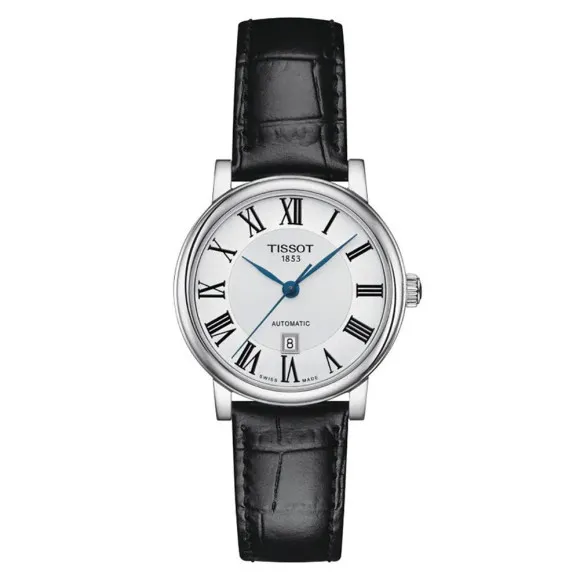 The Tissot® Analogue 'Carson Premium' Women's Watch T1222071603300 is an elegant statement piece that beautifully blends timeless sophistication with modern functionality. This exquisite watch is crafted by Tissot, a brand renowned for its commitment to exceptional quality and precision. The watch features a round case made of stainless steel, measuring an elegant 30mm in diameter. It boasts a striking silver dial that offers a backdrop for the delicate hands and markers, ensuring easy readability while adding a touch of class. The sapphire glass contributes to its durability, providing scratch resistance and clarity. The black leather band, measuring 19cm in length and 15mm in width, brings a soft yet robust feel to the wrist, secured by a reliable buckle clasp. This watch is not only about aesthetics; it is powered by an automatic movement, ensuring precise timekeeping, and includes a date function for added practicality. With a water resistance of up to 5 bars, it’s a versatile accessory suitable for both daily wear and special occasions. The Carson Premium encapsulates the spirit of Tissot's craftsmanship and innovation, making it a perfect choice for women who appreciate luxury and performance in their accessories.
