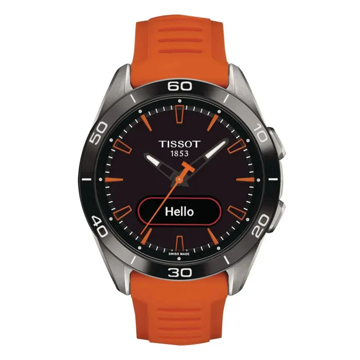 The Tissot® Analogue-digital 'T-touch Connect Sport' Men's Watch T1534204705102 is the quintessential accessory for modern gentlemen who value both functionality and style. Engineered by Tissot, a brand renowned for its Swiss craftsmanship and innovative designs, this timepiece offers the perfect blend of advanced technology and elegant aesthetics. Constructed from lightweight titanium, its round case boasts a sleek silver finish that complements the striking black dial. The sapphire glass window guarantees durability while ensuring a clear view of the watch’s features. With a case diameter of 43mm and a thickness of 14mm, it fits comfortably on any wrist without compromising on presence. Designed for those who lead an active lifestyle, this watch is packed with features. It not only tracks your steps and heart rate but also includes smart technology with Bluetooth connectivity for seamless integration with your devices. The vibrant orange silicone band adds a sporty twist and is designed for comfort, measuring 21cm in length and 21mm in width. It also comes equipped with a reliable quartz movement and solar power capabilities, ensuring you’re always on time without the worry of battery life. Rated at 5 bars for water resistance, this watch is resilient enough for daily wear, whether you’re at the gym or in a meeting. A striking feature of the T-touch Connect Sport is its analogue-digital display, merging traditional timekeeping with modern technological advancements. The bezel adorned with numbers further enhances its functionality, while the handy date calendar adds practicality. Certifying its Swiss excellence, this exquisite watch is an invitation to experience the sophisticated world of Tissot, designed specifically for men who appreciate precision and performance.Shop Tissot T1534204705102 at Ormoda