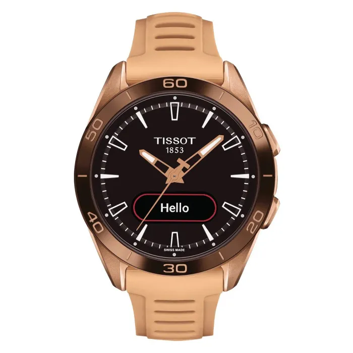 Introducing the remarkable Tissot® Analogue-digital 'T-touch Connect Sport' Unisex's Watch T1534204705105, a brilliant fusion of innovative technology and chic design. This watch stands out with its captivating rose gold titanium case, offering both durability and elegance. Measuring 43mm in diameter and 14mm in thickness, this round case is a perfect companion for any adventure. The exquisite black dial features a protective sapphire glass window, highlighting the sophisticated aesthetic while ensuring longevity. This model transitions seamlessly between analogue and digital displays, offering versatility for the modern wearer. Enjoy impressive functionality with features including a calendar that tracks the date, a heart rate monitor to keep track of your fitness levels, and an integrated step tracker to motivate you throughout your day. This watch is also solar powered, ensuring you remain stylish without needing frequent battery changes. Bluetooth connectivity allows for ease of synchronization with your devices, making it a perfect fit for those who embrace smart technology. The beige silicone band combines comfort with a fashionable look, measuring 20cm in length and 21mm in width, ensuring a comfortable fit on any wrist. With a water resistance of up to 5 bars, the T-touch Connect Sport is suitable for various water-related activities, making this timepiece not just a fashion statement, but also a reliable tool for your lifestyle. Whether you're on the go or dressed for an occasion, this watch is designed to meet the demands of both urban and outdoor environments with style and sophistication.Shop Tissot T1534204705105 at Ormoda