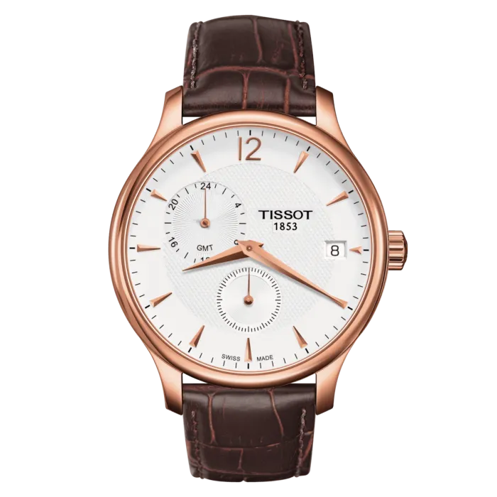 Tissot® Multi Dial 'Tradition' Men's Watch T0636393603700 embodies the exquisite craftsmanship and heritage of the Tissot brand. Renowned for its dedication to quality and innovation, Tissot has been a leading name in the watchmaking industry since its inception. This particular model reflects a blend of classic design and cutting-edge technology, making it the perfect accessory for the modern man. Crafted from high-quality stainless steel, the rose gold case exudes a sense of luxury and elegance. The watch showcases a refined white dial with a multi-dial display, housing sophisticated functions including a date calendar for your convenience. Sapphire glass safeguards the delicate dial, ensuring clarity and longevity. With a comfortable leather band in a rich brown color, this watch not only appeals to your sense of style but also ensures durability and wearability. Measuring 42mm in diameter and 11mm in thickness, the round case strikes just the right balance between presence and subtlety on the wrist. Its deployment clasp enhances ease of use while securing a snug fit. Water-resistant up to 3 bars, the Tissot Multi Dial 'Tradition' is designed to accompany you through various settings, whether you're in a business meeting or enjoying a night out. Weighing only 73 grams, it feels remarkably lightweight for such a robust timepiece, making it an ideal choice for daily wear. This watch is a true testament to Tissot’s motto of being innovative and timeless, perfectly suited for men who appreciate sophistication and reliability.