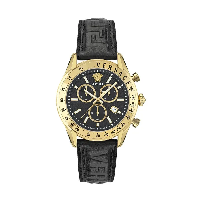 Versace, a name synonymous with luxury and high fashion, has long been a beacon of Italian elegance and opulence. Founded in 1978 by Gianni Versace, the brand exemplifies bold creativity, flamboyant colors, and intricate details. Over the decades, Versace has pushed the boundaries of style, infusing its timepieces with the same daring spirit that defines its fashion collections. Committed to excellence, each watch reflects the brand's luxurious aesthetic, quality craftsmanship, and innovative design. The creation of Versace watches entails a meticulous process designed to ensure every piece stands out, combining high-quality materials with advanced technology. Versace is for those who not only wear a watch but embody a lifestyle of confidence and sophistication. Enthusiasts of Versace appreciate the careful attention to detail and the statement each piece makes, ensuring that wearing a Versace watch is more than just a trendāit's a statement of personal style. Introducing VersaceĀ® Chronograph 'Chrono Master' Men's Watch VE8R00224