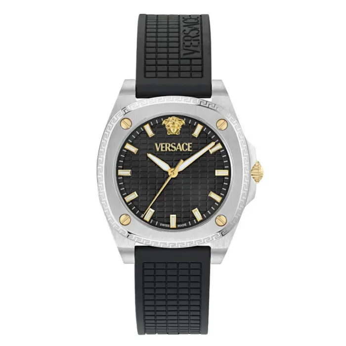 Embrace elegance and confidence with the VersaceĀ® Analogue 'Greca Pulse' Women's Watch VE5H00126. This exquisite timepiece perfectly embodies the sartorial luxury that the iconic brand stands for, seamlessly blending contemporary style with classic craftsmanship. The renowned Italian fashion house has a rich heritage in producing accessories that are not only visually stunning but also empowered by a spirit of innovation. Every Versace creation is marked by attention to detail and a commitment to quality, making it a favorite among fashion aficionados worldwide. The 'Greca Pulse' model captures the essence of Versaceās bold design language, offering a statement piece suitable for any occasion. The sleek round stainless steel case, measuring 35.8mm in diameter and 9mm thick, exudes sophistication. Its lustrous silver tone complements the chic black dial, adorned with precise time indicators set beneath a durable sapphire glass window. This watch not only ensures legibility but also signifies strength, as it is water-resistant up to 5 bars. The polyurethane strap in timeless black fits comfortably around the wrist, extending to a length of 19cm and a width of 18mm. The ergonomic design together with the sturdy buckle clasp assures a secure fit for the discerning woman who appreciates both aesthetics and functionality. Adding to its allure is a charming weight of 75 grams, making it a delight to wear. The Versace 'Greca Pulse' is not merely a watch; it's an essential piece that reflects personality and flair.Shop Versace VE5H00126 at Ormoda