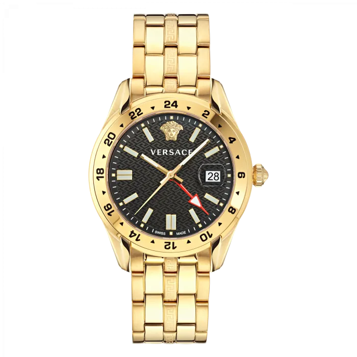 Introducing the VersaceĀ® Analogue 'Greca Time Gmt' Men's Watch VE7C00723, an amazing blend of classic craftsmanship and modern sophistication, this timepiece speaks to the refined tastes of men who appreciate both style and functionality. Versace, a name synonymous with high fashion and luxury, has a storied history of creating accessories that transform a man's look into something extraordinary. The 'Greca Time Gmt' is no exception, adorned with the signature Versace flair that appeals to those who are confident and assertive in their clothing choices. Crafted with meticulous attention to detail, this watch features a bold black dial that serves as a striking backdrop for its luxurious gold accents. The 41mm round case is made of durable stainless steel, ensuring it withstands everyday wear while retaining its elegance. The gold bezel adorned with numbers complements the case beautifully, giving it an eye-catching touch that emphasizes its exclusivity. Underneath the sapphire glass, the analogue display is not only functional but also fascinating to observe, further enhancing its appeal. Equipped with a reliable quartz movement, the 'Greca Time Gmt' ensures precise timekeeping for men who value punctuality. Its deployment clasp secures the gold stainless-steel band, which fits comfortably on the wrist and is suitable for daily wear. The watch also includes a date calendar, a useful feature for the busy man on the go. With a water resistance of up to 5 bars, this watch can endure the rigors of everyday life, maintaining its allure whether at the office or out on the town. The combination of functionality and high-end design makes the VersaceĀ® Analogue 'Greca Time Gmt' Men's Watch VE7C00723 a quintessential accessory for any modern gentleman. Wearing this timepiece not only keeps you on time but also elevates your overall presence, embodying the luxurious lifestyle that Versace represents.Shop Versace VE7C00723 at Ormoda