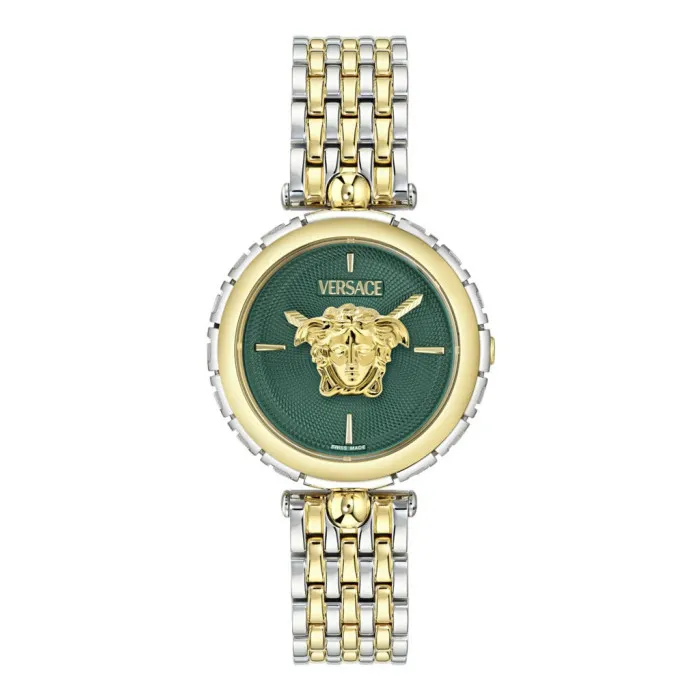 Introducing the exquisite VersaceĀ® Analogue 'Medusa Heritage' Women's Watch VE9D00324, an elegant embodiment of luxury and sophistication tailored specifically for women who appreciate the finer things in life. This stunning timepiece is a testament to Versace's dedication to craftsmanship, blending high-end design with functionality. The round, gold stainless steel case measures 37mm in diameter and 11mm in thickness, radiating an aura of opulence. The captivating green dial, protected by sapphire glass, adds a touch of unique charm, making it suitable for both everyday wear and special occasions. This watch operates on reliable quartz movement, ensuring precision with each tick, a quality that reflects the brand's renowned commitment to excellence. The Multicolour stainless steel band, measuring 19cm in length and 16mm in width, is adorned with a deployment clasp for secure and comfortable wear. Designed with 5 ATM water resistance, this timepiece is practical for the dynamic lifestyle of modern women, allowing for occasional splashes without compromising its beauty. The lug to lug height of 52mm enhances its silhouette, providing a gracious fit for various wrist sizes. Whether paired with casual attire or an elegant dress, the VersaceĀ® Analogue 'Medusa Heritage' Women's Watch is a statement piece that symbolizes empowerment, sophistication, and style. Embrace timeless elegance and let this masterpiece accompany you on your journey of life. Shop Versace VE9D00324 at Ormoda