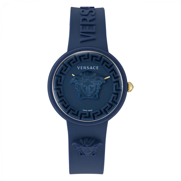 The VersaceĀ® Analogue 'Medusa Pop' Unisex's Watch VE6G00623 is a captivating piece that seamlessly merges style with functionality. This eye-catching watch features a vibrant blue silicone case that not only provides a modern aesthetic but also ensures durability and comfort. Measuring 39mm in diameter and 12mm thick, the round-shaped watch case is designed to fit comfortably on any wrist, making it a perfect choice for both men and women. The striking blue dial is protected by sapphire glass, known for its exceptional scratch resistance and clarity. This watch stands out with its bold coloring and refined analogue display, perfect for casual wear while providing a touch of luxury typically associated with the Versace brand. With a buckle clasp, the 20cm long and 18mm wide silicone band ensures a snug fit. Additionally, this watch is designed to withstand water pressure up to 5 bars, making it suitable for everyday use without worry. Powered by precise quartz movement, the timekeeping is reliable and accurate, ensuring you stay punctual whether at work or during leisure activities. The overall weight of the watch is a light 48.0 grams, making it a comfortable accessory to wear throughout your day. The Medusa Pop watch is not just a timepiece; it's a statement of elegance and style that reflects the bold identity of Versace, allowing you to express your personality through this exceptional accessory. Shop Versace VE6G00623 at Ormoda