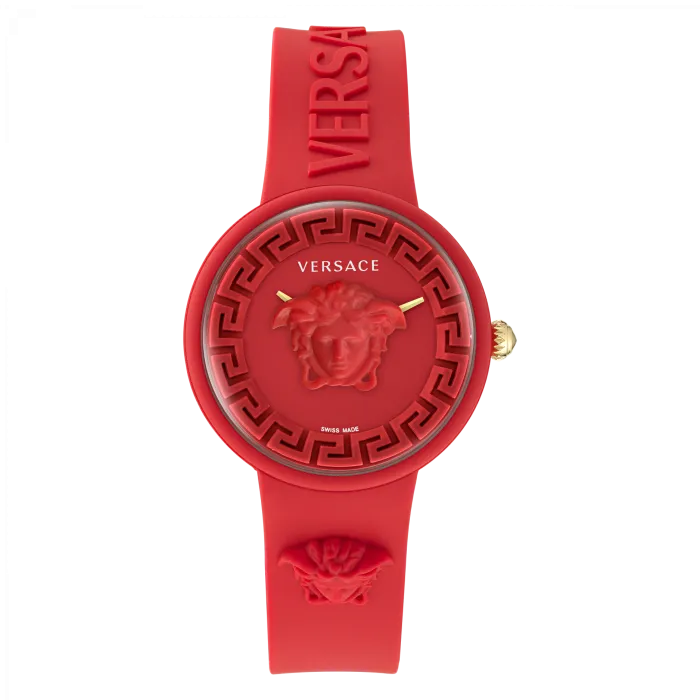 The VersaceĀ® Analogue 'Medusa Pop' Unisex Watch VE6G00723 is a bold and stylish accessory that embodies the playful elegance of the iconic fashion house. With its vibrant red case and band, this timepiece is designed to stand out, making it a perfect choice for fashion-forward individuals who appreciate luxurious details. The watch features a round case measuring 39mm, crafted from durable silicone, ensuring both comfort and resilience for daily wear. At a thickness of 12mm, it adds just the right amount of presence on the wrist without feeling bulky. The striking red dial is protected by sapphire glass, known for its scratch resistance and clear visibility. The analogue display adds a classic touch, complemented by the casual style of the watch, which is suitable for various occasions. The buckle clasp ensures a secure fit, while the silicone band, with a width of 18mm and a length of 20cm, wraps comfortably around any wrist. With an impressive water resistance of up to 5 bars, this watch is both practical and stylish, allowing you to enjoy your daily activities without worry. The quartz movement guarantees precise timekeeping, ensuring youāre always on schedule. The Versace Medusa emblem on the watch perfectly symbolizes the essence of the brand, marrying fashion and functionality seamlessly. Shop Versace VE6G00723 at Ormoda