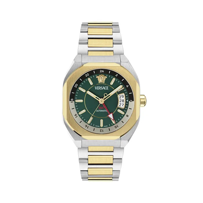 Behold the striking VersaceĀ® Analogue 'V-contempo Gmt' Men's Watch VE0I00325, where luxury meets functionality in perfect harmony. Characterized by an exquisite green dial, this watch is a fearless declaration of style. Encased in a lustrous stainless steel housing, its round case not only highlights a sleek 40mm diameter but also boasts a thickness of just 12.25mm, exuding a bold yet refined character. The impeccable craftsmanship is further accentuated by the sapphire glass window that provides unparalleled clarity and durability. This timepiece is built for the modern man who values both aesthetics and performance. Adding to its allure is the multicolour stainless steel band, measuring 21cm in length and 24mm in width. Whether you're at a formal event or a casual gathering, this watch seamlessly adapts to every occasion. The deployment clasp secures it comfortably on your wrist, ensuring the watch stays in place while offering ease of wear. With features such as an automatic movement, a date calendar, and an impressive water resistance of up to five bars, the VersaceĀ® Analogue 'V-contempo Gmt' is not just a watch; it's an essential companion for those who command elegance and precision in all aspects of their lives. Dare to embrace sophistication with this exceptional timepiece that embodies the spirit of Versace. Experience every moment with confidence, making a bold statement wherever you go.