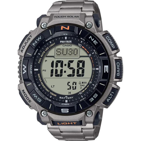 Casio is a brand synonymous with innovation, quality, and cutting-edge technology in the world of timekeeping. Established in 1946, Casio has continually pushed the boundaries of what is possible with watches, integrating advanced features into rugged designs suited for the dynamic lifestyles of its users. The Pro-Trek line exemplifies Casio's commitment to excellence, offering watches that cater to enthusiasts of the outdoors and adventure. These timepieces are designed to withstand extreme conditions, ensuring reliability, functionality, and professional-grade performance. With features that meet the needs of hikers, trekkers, and explorers, Pro-Trek watches are a testament to Casio's engineering prowess and dedication to making the great outdoors accessible and enjoyable. Each watch is a balance of style and practicality, appealing to those who value both elegance and durability. Whether in the field or around town, Casio's Pro-Trek family is a symbol of strength and precision, embodying the spirit of adventure in every detail.Introducing Casio® Digital 'Pro-trek' Men's Watch PRG-340T-7ER