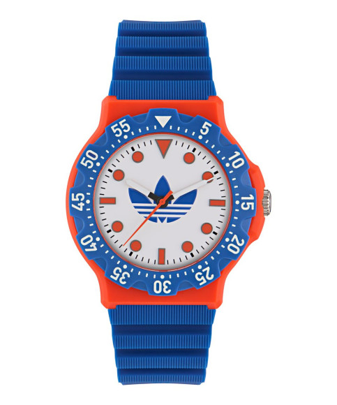 Introducing the Adidas Originals® Analogue 'Discoverer Two' Unisex's Watch AOSY25513, a perfect blend of functionality and style. This watch is designed for those who appreciate quality and want a timepiece that enhances their everyday attire. Part of the renowned Adidas Originals brand, known for its innovation and timeless designs, the Discoverer Two represents an active lifestyle, catering to both fashion enthusiasts and sports aficionados alike. With a focus on comfort and aesthetic appeal, this watch is made to be worn throughout various activities, whether you're hitting the gym or enjoying a night out. The brand emphasizes durability, ensuring that each piece reflects a commitment to excellence with every detail carefully considered. The Adidas Originals® Analogue 'Discoverer Two' stands out with its striking orange resin case, measuring 40mm in diameter and 12mm in thickness. The round case style is complemented by a mesmerizing white dial that features a mineral glass window, offering clear visibility and protection against everyday wear. Notably, the watch bezel boasts numbers, providing both function and flair. A quartz movement powers this timepiece, ensuring precision in every tick. The blue silicone band, measuring 20cm in length and 21mm in width, combines durability with flexibility, ensuring a comfortable fit on the wrist. The secure buckle clasp keeps the watch in place, giving you peace of mind during your active day. Rated to 5 ATM, the watch is resistant to splashes and brief immersion in water, making it suitable for various environments. With a lug-to-lug height of 46mm, this unisex watch is designed to complement a variety of wrist sizes and styles. In a world where personal style meets practicality, the Discoverer Two emerges as a must-have accessory for anyone seeking to make a statement.Shop Adidas Originals AOSY25513 at Ormoda