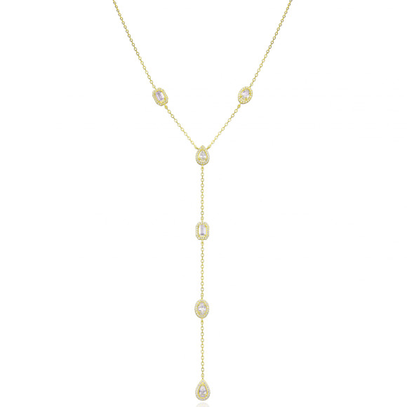 The Gena.paris® 'Gabriella' Women's Sterling Silver Necklace - Gold GC1580-Y is more than just a piece of jewelry; it is a statement of elegance and sophistication. Crafted from high-quality 925 sterling silver and beautifully overlaid with gold, this necklace embodies grace while ensuring durability that can withstand the test of time. Adorned with six exquisite pear-shaped zirconium stones, each radiating a dazzling white glow, the necklace captures light in an alluring way, making it the perfect accessory for any occasion. Designed with the modern woman in mind, the 'Gabriella' necklace features a stylish rolo chain that offers both comfort and elegance. With an adjustable length ranging from 38 to 46 cm, it allows for versatile styling to suit your outfits and neckline preferences. The lobster claw clasp ensures security while adding a touch of sophistication, providing peace of mind as you wear this stunning piece. Whether layered with other necklaces for a trendier look or worn alone for a more classic style, the 'Gabriella' necklace brings a touch of luxury and refinement to your jewelry collection. This necklace is perfect for celebrating special moments or simply elevating everyday attire. Its feminine design complements the beauty of all women, making it an ideal gift for loved ones or a wonderful addition to your own jewelry box. With the Gena.paris name behind it, this necklace not only represents fashion but also a commitment to quality and craftsmanship, promising to be cherished for years to come.Shop Gena.paris GC1580-Y at Ormoda