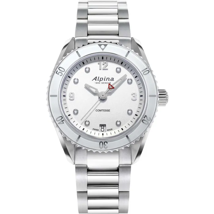 L'alpina alpiner comtesse sport est une montre parfaitement conçue qui s'adapte à n'importe quel look élégant. Cette montre analogique dispose d'une fonction calendrier : date, ainsi que d'aiguilles lumineuses et d'un mouvement swiss made.
