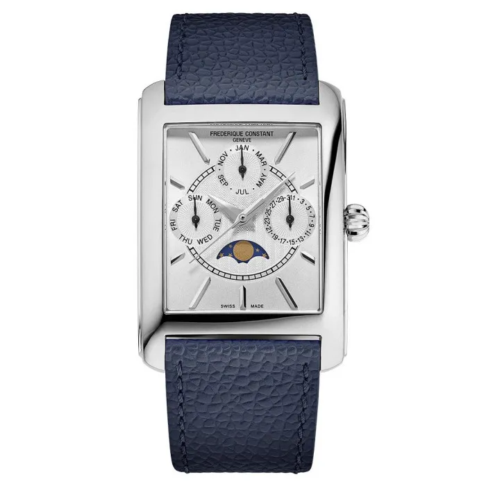 Découvrez la montre classics carrée moonphase, un garde-temps qui allie une esthétique carrée distinctive à une fonctionnalité remarquable. Cette montre à cadrans multiples dispose d’une fonction calendrier : jour-date-mois, est équipée d’une phase de lune et possède un mouvement swiss made.