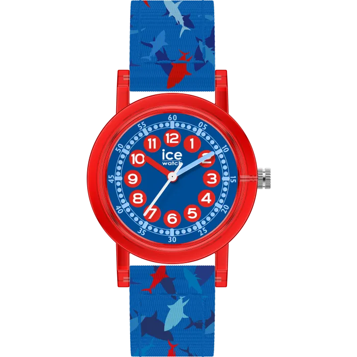 Découvrez ice learning, la montre conçue pour aider votre enfant à apprendre l'heure avec style et facilité. Dotée d'une teinte bleu profond et de motifs fascinants de requins, cette montre est l'accessoire parfait pour les jeunes explorateurs des océans.