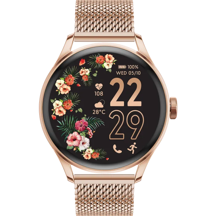 Exprimez votre style avec la montre milanaise ronde en or rose ice smart 2.0. Dotée d'un écran amoled de 1,2", cette montre offre l'équilibre parfait entre élégance et confort. Cette montre digitale dispose d'une fonction calendrier : jour-date , bluetooth , chronomètre , minuterie , cardiofréquencemètre et alarme