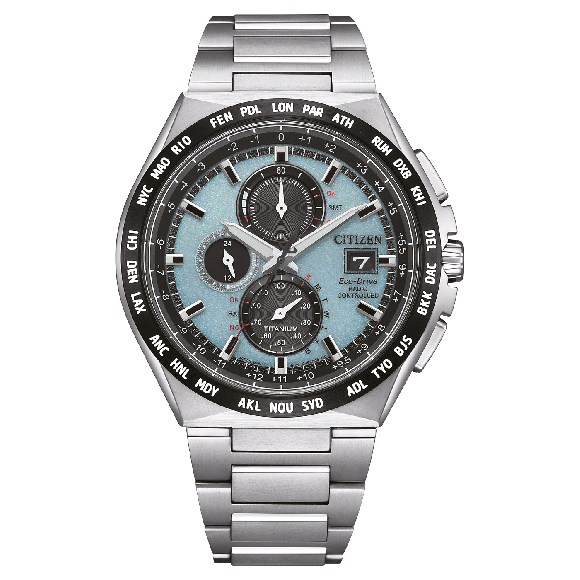Cette montre de haute qualité est dotée de la technologie eco-drive (rechargeable par toute source de lumière ; ne nécessite jamais de batterie). Cette montre chronographe dispose des fonctions suivantes : date, contrôle radio, énergie solaire, chronomètre, affichage 24 heures et aiguilles lumineuses.