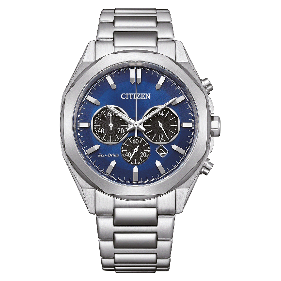 Eco-drive - eco-drive est une technologie de base de citizen vieille de 40 ans qui génère de l'énergie même dans des conditions de faible luminosité, permettant aux montres de fonctionner pendant plus de six mois, même dans l'obscurité. Cette montre chronographe a une function calendrier: date , energie solaire , chronographe , affichage 24h et aiguilles lumineuses