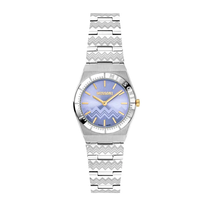 Missoni milano est l'incarnation de la féminité et de l'élégance. Le motif zigzag emblématique de la maison retrouve un branding fort sur toute la montre avec de multiples exécutions sur le bracelet et le cadran capables d'embellir ce garde-temps au style unique et raffiné. Cette montre analogique a un mouvement swiss made