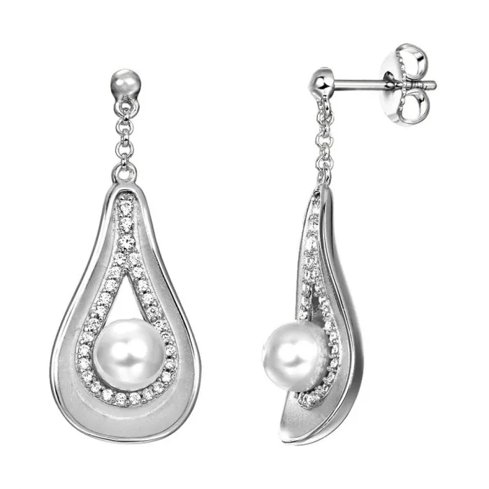 Boucle d'doréeille magnifique en acier inoxydable argenté pour femmes serti de zirconium blanc-longueur: 4.3 cm