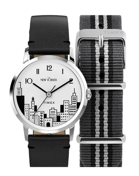 Joignez-vous à nous pour célébrer le 100e anniversaire du new yorker, toujours en phase avec son époque. Cette montre analogique est livrée avec un bracelet en tissu multicolore supplémentaire.