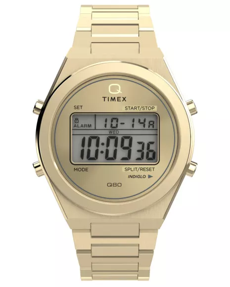 S'inspirant des designs audacieux et du glamour décadent de west hollywood, la timex q80 réinvente notre q timex. Cette montre numérique dispose de la fonction calendrier : jour-date, ainsi que du chronomètre, de l'alarme et de la lumière indiglo.