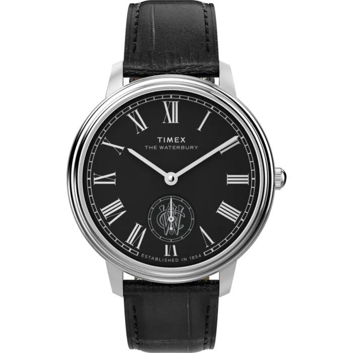 Définie par des lignes nettes et des courbes élégantes, la waterbury sub-second présente un boîtier en acier inoxydable de 39 mm amélioré avec un profil plus mince et une lunette à deux niveaux élégante.