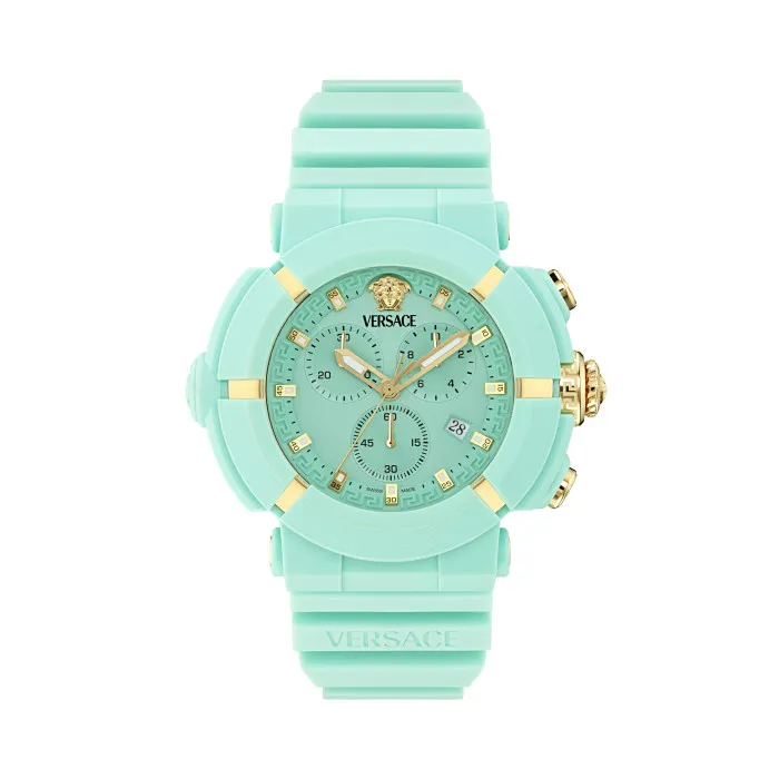 Une réinterprétation audacieuse du best-seller iconique, l'icon active de versace, cette collection est conçue pour résonner avec les goûts dynamiques d’un public plus jeune. Cette montre chronographe est dotée d’une fonction calendrier : date, équipée d’un chronomètre, d’aiguilles lumineuses, de chiffres lumineux et d’un mouvement swiss made.