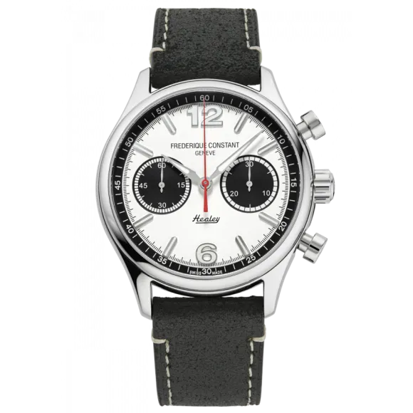 Frederique Constant has established itself as a prestigious name in the world of horology, merging classic aesthetics with modern innovation. Renowned for its dedication to excellence, the brand offers a range of meticulously crafted timepieces that reflect timeless elegance and reliable performance. The craftsmanship is unparalleled, embodying the values of Swiss watchmaking heritage while appealing to the contemporary watch lover. Each collection is characterized by sophisticated designs that seamlessly integrate intricate mechanisms, serenading enthusiasts with every tick. Frederique Constant's commitment to producing high-quality watches begins with the selection of fine materials, ensuring both durability and luxury. Its philosophy is simple but profound: to create delightful timepieces that celebrate craftsmanship and elegance, making them treasured assets for every collector. This dedication resonates through every product they offer, reflecting their mission to bring quality watches accessible to discerning gentlemen.Introducing Frederique Constant® Chronograph 'Vintage Rally Healey' Men's Watch FC-397HSB5B6