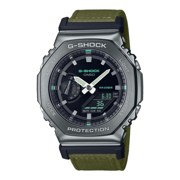 De Casio Analoge-digitale 'G-shock' Herenhorloge GM-2100CB-3AER is het summum van stijl en functionaliteit, ontworpen voor de moderne man die waarde hecht aan robuuste verfijning. Casio heeft een langdurige reputatie opgebouwd voor het creëren van duurzame horloges die innovatieve functies combineren met een tijdloos design. Dit specifieke model toont de toewijding van het merk aan kwaliteit en betrouwbaarheid, waardoor het een uitstekende keuze is voor zowel dagelijks gebruik als avontuurlijke uitjes. De G-shock serie is bekend om zijn veerkracht, perfect voor degenen die een actief leven leiden. Dit horloge heeft een sportieve esthetiek met een moderne twist, waardoor het een veelzijdige accessoire is dat geschikt is voor elke gelegenheid. Dit opvallende tijdpiece heeft een robuuste grijze stalen kast met een diameter van 44 mm en een dikte van slechts 11 mm, wat zorgt voor een gedurfde uitstraling zonder in te boeten op comfort. De horlogekast is omringd door mineraalglas, wat duurzaamheid biedt en tegelijkertijd de helderheid behoudt. De zwarte wijzerplaat heeft elegante, gemakkelijk leesbare analoge wijzers en digitale displays die de functionaliteit benadrukken. Wanneer je de functies verkent, waardeer je de uitgebreide functionaliteit van de Casio G-shock. Het horloge bevat een dag-datum kalender, stopwatch, afteltimer en wereldtijd functie, allemaal essentieel voor de moderne man onderweg. Bovendien heeft het horloge een uitstekende waterbestendigheid tot 20 bars, waardoor je het in elke weersomstandigheid kunt dragen zonder je zorgen te maken. De groene stoffen horlogeband voegt niet alleen een vleugje kleur toe, maar is ook ontworpen voor comfort en stabiliteit, met een royale lengte van 21 cm en een breedte van 24 mm. De gesp sluiting zorgt voor een veilige draagervaring, waardoor dit tijdpiece net zo praktisch als stijlvol is.Koop Casio® Analogue-digital 'G-shock' Herenhorloge GM-2100CB-3AER bij Ormoda