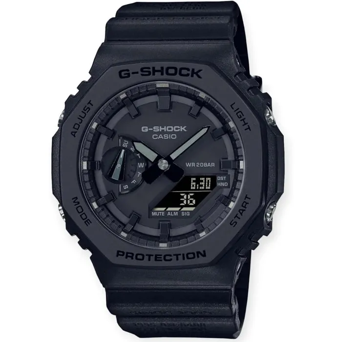 De Casio Analogue-digital 'G-shock Remaster' Herenhorloge GA-2140RE-1AER combineert geavanceerde technologie met een robuuste stijl, waardoor het de ideale keuze is voor de moderne man die prestaties en duurzaamheid eist. Als onderdeel van de gerespecteerde G-shock lijn staat deze horloge bekend om zijn duurzaamheid en geavanceerde functies. De ronde kast met een diameter van 44 mm is vervaardigd uit weerbestending kunststof, wat ervoor zorgt dat het horloge bestand is tegen de tand des tijds en diverse omgevingen. Met een gedurfde zwarte kleurstelling straalt het horloge een stijlvolle en mannelijke esthetiek uit die elke sportieve of casual outfit aanvult. Dit horloge is uitgerust met een quartz uurwerk, wat zorgt voor een nauwkeurige tijdweergave en biedt tegelijkertijd een scala aan functionaliteiten die het dagelijks gebruik verbeteren. Geniet van het gemak van een analoog-digitale weergave die klassieke esthetiek combineert met moderne technologie. De watch beschikt over een praktische dag-datum kalender, stopwatch, countdown timer, wereldtijd functie, alarm en zelfs een licht voor gebruik in omstandigheden met weinig licht, waardoor het echt veelzijdig is. De zwarte plastic band, die 21 cm lang en 22 mm breed is, biedt comfort en flexibiliteit voor dagelijks gebruik of avontuurlijke activiteiten. Een veilige gespsluiting zorgt ervoor dat het horloge stevig op zijn plaats blijft, terwijl de robuuste constructie een waterbestendigheid tot 20 bar biedt, waardoor dragers zonder zorgen aan wateractiviteiten kunnen deelnemen. Met een totaal gewicht van slechts 60 gram is dit horloge licht van gewicht maar toch gebouwd om te weerstaan. Of je nu een atleet, een buitenliefhebber bent of gewoon iemand die waarde hecht aan functionaliteit en stijl, de Casio Analogue-digital 'G-shock Remaster' GA-2140RE-1AER is ontworpen om je te vergezellen, waar het leven je ook brengt.Koop Casio® Analogue-digital 'G-shock Remaster' Herenhorloge bij Ormoda