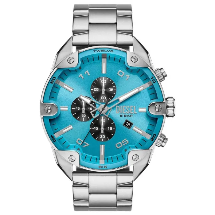 De Diesel® Chronograph 'Spiked' Herenhorloge DZ4655 is een waar testament van de combinatie van functionaliteit en stijl. Ontworpen voor de actieve levensstijl, vangt dit sportieve tijdsysteem een gedurfde esthetiek terwijl het robuuste prestaties levert. In het hart van de horloge ligt een nauwkeurige quartzbeweging, waarmee elke seconde wordt geregistreerd, of je nu in een bestuurskamer zit of buiten avonturen beleeft. Het horloge beschikt over een opvallende blauwe wijzerplaat, vergezeld van chronograaffuncties die niet alleen nut bieden, maar ook de visuele aantrekkingskracht verhogen. Gehäus in duurzame roestvrijstaal, heeft het horloge een significante diameter van 49mm, perfect balancerend tussen aanwezigheid en elegantie om de pols. Het ronde ontwerp met een dikte van 13mm garandeert een krachtige uitstraling, terwijl het mineraalglazen raam duidelijkheid en bescherming biedt tegen dagelijks gebruik. De roestvrijstalen band, met een lengte van 21cm en een breedte van 24mm, heeft een vouwsluiting met een drukknop, wat zorgt voor een veilige en comfortabele pasvorm. Met een waterdichtheid van 5 bar kan dit horloge spetters en kortstondige onderdompeling weerstaan, wat de geschiktheid voor dagelijks gebruik aantoont. De kalenderfunctie voegt extra praktisch nut toe, waardoor het niet alleen een luxeaccessoire is, maar ook een essentiële metgezel in je dagelijkse routine. Het Diesel 'Spiked' horloge belichaamt de geest van moderne mannelijkheid, ontworpen voor degenen die de grenzen durven te verleggen terwijl ze stijlvol aanwezig zijn.Koop Diesel® Chronograph 'Spiked' Herenhorloge bij Ormoda