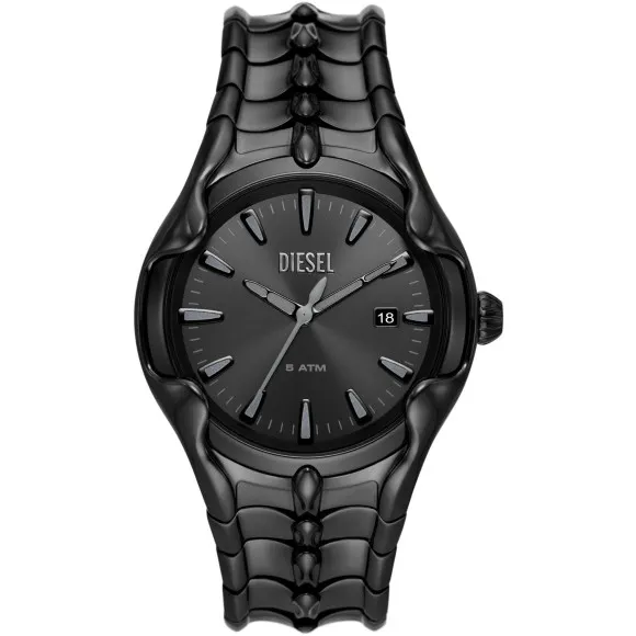 De Diesel® Analogue 'Vert' herenhorloge DZ2187 is de perfecte belichaming van hedendaagse luxe, gecombineerd met robuuste verfijning. Met precisie vervaardigd en ontworpen voor de moderne man, verenigt dit horloge functionaliteit met een gedurfde esthetiek. De ronde kast, gemaakt van duurzaam roestvrij staal, heeft een opvallende zwarte afwerking die vertrouwen en stijl uitstraalt. Met een royale diameter van 44 mm is het horloge substantieel, maar ook comfortabel, en zit het perfect om de pols. De slanke zwarte wijzerplaat, beschermd door mineraalglas, voegt aantrekkingskracht toe en biedt een minimalistisch maar opvallend ontwerp dat aanspreekt bij degenen met een verfijnde smaak. Dit horloge draait niet alleen om uiterlijk; het is uitgerust met een betrouwbare quartz beweging die zorgt voor nauwkeurige tijdregistratie, een eigenschap die gewaardeerd wordt door veeleisende horlogeliefhebbers. De datumfunctie vergroot de praktische bruikbaarheid, terwijl de vouwsluiting met drukknop zorgt voor een veilige pasvorm tijdens dagelijkse activiteiten. Met een bandlengte van 21 cm en een breedte van 24 mm omarmt de roestvrijstalen band zowel comfort als duurzaamheid. De zwarte tint van de band sluit perfect aan bij de kast, waardoor een samenhangend en stijlvol geheel ontstaat dat moeiteloos van dag naar nacht gaat. Of je je nu kleedt voor een zakelijke bijeenkomst of geniet van een informele avond uit, het Diesel 'Vert' horloge is een betrouwbare metgezel. Ontworpen om druk tot 5 ATM te weerstaan, is het geschikt voor dagelijks gebruik zonder zorgen. Dit horloge is meer dan alleen een accessoire; het is een statementstuk dat succes en ambitie weerspiegelt.