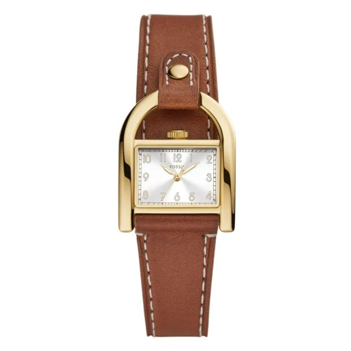 Maak kennis met het prachtige Fossil® Analogue 'Harwell' Dameshorloge ES5264, een meesterwerk dat is ontworpen om elke outfit te verfraaien met zijn elegante charme. Dit verfijnde dresshorloge heeft een tijdloos rechthoekig kastje, vervaardigd uit duurzaam roestvrij staal en afgewerkt in een luxueuze gouden kleur. De horlogekast heeft een diameter van 28 mm en een slanke profiel van slechts 7 mm dik, waardoor hij perfect past om elke pols. Met een verfijnd zilverkleurig uurwerk, beschermd door mineraalglas, biedt het tijdstip een schone en leesbare weergave die stijl en functionaliteit belichaamt. Het 'Harwell' horloge beschikt over een verfijnde quartzbeweging, wat zorgt voor een nauwkeurige tijdwaarneming, of je nu aan het werk bent of uitgaat voor een speciale gelegenheid. De rijke bruine lederen band, die even comfortabel als chic is, meet 19 cm in lengte en 20 mm in breedte. De gesp zorgt voor een veilige pasvorm, zodat je deze schoonheid met vertrouwen kunt dragen. Ontworpen voor de moderne vrouw, is dit horloge waterbestendig tot 3 bar, wat gemoedsrust biedt tijdens dagelijkse activiteiten. Met een gewicht van 32 gram is dit horloge een bijzonder licht accessoire dat je bijna niet merkt dat je het draagt. Ontketen je stijl met het Fossil® Analogue 'Harwell' Dameshorloge ES5264, waar elegantie en duurzaamheid samenkomen voor elke gelegenheid die je tegenkomt.Koop Fossil® Analogue 'Harwell' Dameshorloge bij Ormoda
