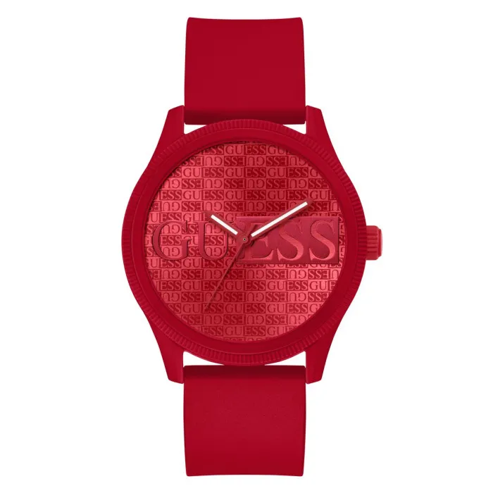 De Guess® Analogue 'Reputation' Herenwatch GW0780G2 is een statement piece volledig gericht op de moderne man die zijn gedurfde stijl omarmt. Het opvallende rode kast en wijzerplaat geven een energieke flair, waardoor hij perfect is voor zowel casual uitjes als meer formele gelegenheden. Deze horloge is met precisie vervaardigd en beschikt over een duurzame kunststof kast en een mineralen glasraam dat de elegante analoge weergave beschermt. Met een diameter van 45 mm en een dikte van 10 mm zit hij comfortabel om de pols en trekt hij de aandacht. De waterbestendigheid tot 3 bar biedt gemoedsrust tijdens dagelijks gebruik, waardoor dit tijdpiece niet alleen stijlvol maar ook functioneel is. Het horloge wordt aangevuld met een levendige rode siliconen band van 22 mm breed en aanpasbaar tot 21 cm in lengte voor een veilige pasvorm. Deze combinatie van materialen zorgt voor comfort en duurzaamheid, waardoor het geschikt is voor elke levensstijl. De gesp zorgt voor gemakkelijke aanpassingen, zodat je het eenvoudig kunt dragen en verwijderen. Met quartz beweging garandeert de Guess® Analogue 'Reputation' horloge nauwkeurigheid en betrouwbaarheid, zodat je geniet van precieze tijdweergave. Met een gewicht van slechts 53,5 g is het lichtgewicht en zorgt het voor comfort gedurende de hele dag, terwijl het een vleugje flair aan je outfit toevoegt. De kleuren en ontwerpelementen van het horloge werken samen om een veelzijdige accessoire te creëren dat elk garderobe aanvult. Kies de Guess® Analogue 'Reputation' Herenwatch voor een upgrade van je stijl en maak een blijvende indruk.
