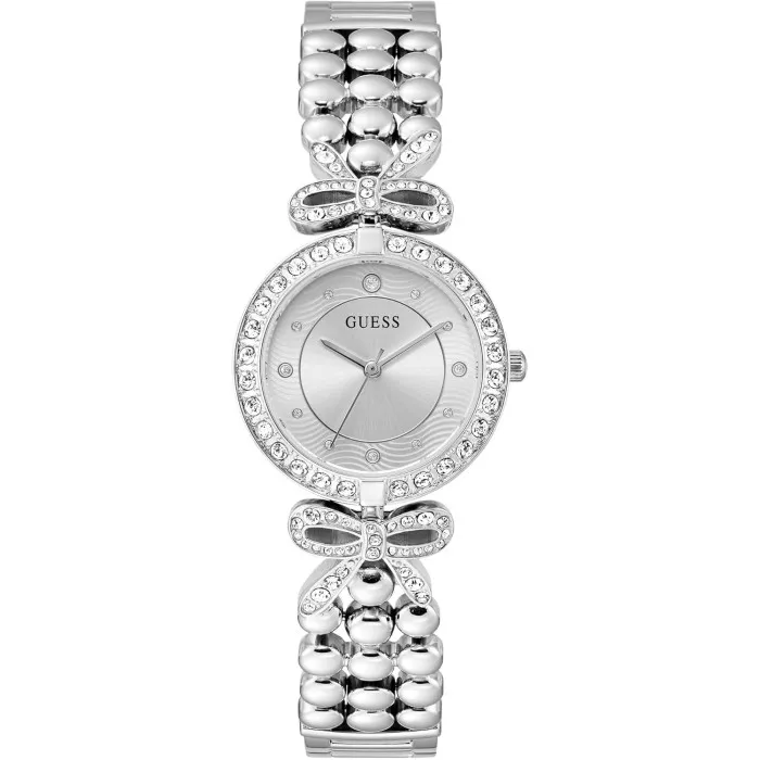 Guess staat synoniem voor gedurfde ontwerpen en een scherp oog voor detail, waarmee ze tijdloze horloges creëren die resoneren met degenen die houden van high fashion en unieke stijl. Bekend om hun innovatieve geest, integreert Guess hedendaagse trends met klassieke elegantie, en leidt ze de markt in zowel sieraden als horloges. Elke collectie weerspiegelt niet alleen een toewijding aan kwaliteit, maar ook een inzet voor het vastleggen van de essentie van moderne vrouwelijkheid. Met een rijke geschiedenis sinds de oprichting staat Guess nog steeds aan de top van modeaccessoires en blijven ze continu ontwerpen die zo praktisch als mooi zijn. Deze toewijding blijkt uit het zorgvuldige ontwerpproces, waar elk element harmonieus samenkomt om verbluffende resultaten te creëren die aanspreken bij een breed publiek. Hun horloges zijn ontworpen voor vrouwen die waarde hechten aan zowel stijl als substance, wat ervoor zorgt dat elk stuk niet alleen elke outfit aanvult, maar ook de tand des tijds doorstaat.Over Guess® Analogue 'Ribbon' Dameshorloge