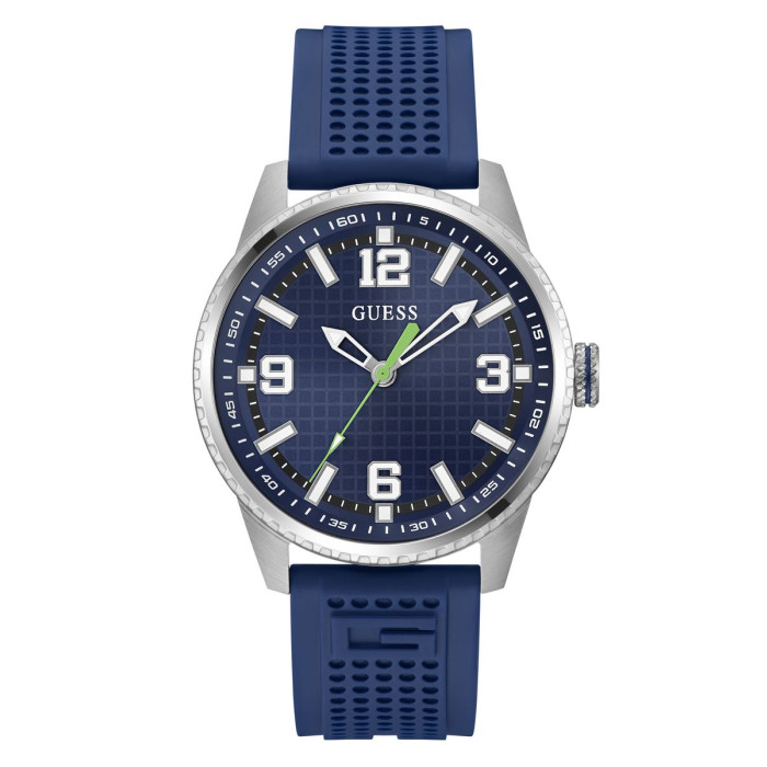 Maak kennis met de Guess® Analogue 'Varsity G' herenhorloge GW0890G1, een toonbeeld van stijl en functionaliteit ontworpen voor de moderne man. Met zijn betoverende blauwe wijzerplaat en robuuste roestvrijstalen kast straalt dit horloge een zelfverzekerde charme uit die aanspreekt aan degenen die kwaliteit en elegantie waarderen in hun dagelijkse accessoires. Het merk Guess, beroemd om zijn innovatieve ontwerpen en toewijding aan precisie, heeft voortdurend uitstekende horloges geleverd die aansluiten bij de hedendaagse trends, waardoor het een favoriet is onder modebewuste individuen. Sinds de oprichting heeft Guess zich gericht op het verleggen van grenzen door middel van innovatie en gedurfde esthetiek, met als resultaat horloges die niet alleen tijdgenoten zijn maar ook mode-uitingen. Dit herenhorloge belichaamt de essentie van de Guess-filosofie: onophoudelijke kwaliteit gecombineerd met een opvallend ontwerp. De Guess® Analogue 'Varsity G' herenhorloge is vervaardigd met een quartz uurwerk, wat zorgt voor nauwkeurige tijdregistratie en onverslaanbare betrouwbaarheid. Dit uurwerk heeft een robuuste ronde kast, met een diameter van 42 mm en een dikte van 9 mm, wat zorgt voor een aanzienlijke aanwezigheid om de pols terwijl het tegelijkertijd comfortabel blijft voor dagelijks gebruik. Het mineraalglazen wijzerplaatvenster voegt niet alleen duurzaamheid toe, maar beschermt ook de opvallende blauwe wijzerplaat, die wordt aangevuld door een stijlvolle blauwe siliconen band. De band, met een lengte van 21 cm en een breedte van 21 mm, versterkt de sportieve uitstraling van het horloge. Met een indrukwekkende waterbestendigheid van 5 ATM is dit horloge ontworpen om spatwater en kort onderdompelen in water te weerstaan. De traditionele gesp sluiting zorgt voor een veilige pasvorm, waardoor de drager zowel een actieve levensstijl als verfijnde gelegenheden zonder aarzelen kan omarmen. Of je nu naar kantoor gaat of een weekendavontuur beleeft, de Guess® Analogue 'Varsity G' herenhorloge GW0890G1 is de perfecte metgezel, die moeiteloos aan elke setting aanpast.