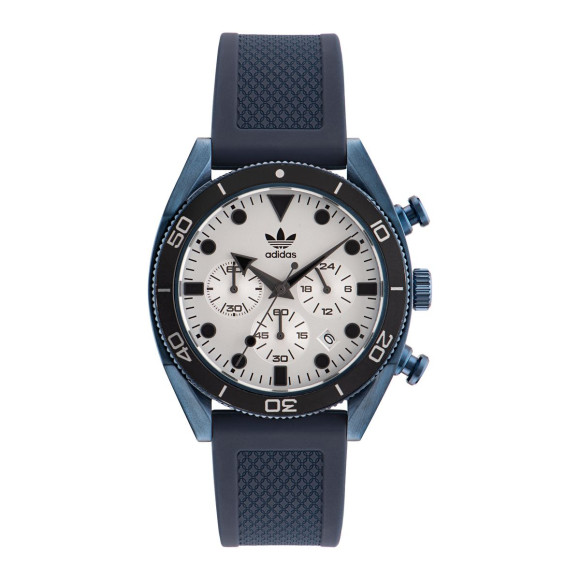 De Adidas Originals® Chronograph 'Edition Two Chrono' Unisex Watch AOFH23004 belichaamt de dynamische geest van de actieve levensstijl. Dit horloge is ontworpen voor degenen die zowel stijl als functionaliteit waarderen, waardoor het de ultieme metgezel is voor sportieve en informele uitjes. De verbluffende blauwe kast is vervaardigd uit hoogwaardig roestvrij staal, wat duurzaamheid en een opvallende uitstraling biedt. De ronde kast, met een diameter van 43 mm en een dikte van 12 mm, past comfortabel om de pols, terwijl de waterbestendigheid tot 10 bar betekent dat je het vol vertrouwen kunt dragen, regen of zonneschijn. Onder de glanzende zilveren wijzerplaat ligt een uurwerk aangedreven door betrouwbare quartz beweging, wat precisie in elke tik garandeert. De chronograafweergave biedt niet alleen de standaardtijd, maar ook de extra functie om de verstreken tijd bij te houden, aantrekkelijk voor fitnessliefhebbers en degenen die leven in de fast lane. De datumfunctie is een doordachte toevoeging voor alledaags gemak. Gehuisvest onder een veerkrachtig mineraalglas is de wijzerplaat beschermd tegen krassen en biedt een heldere kijk op de tijd. Gestyled voor een unisex aantrekkingskracht, meet de levendige blauwe siliconen strap een comfortabele lengte van 20 cm en een breedte van 21 mm, veiliggesteld met een betrouwbare gesp. De draaibare bezel verhoogt de functionaliteit van het horloge en voegt een sportieve esthetiek toe. Met een gewicht van slechts 92 gram is het licht genoeg voor een hele dag dragen. Met een totale hoogte van 49 mm van lug tot lug is het perfect geproportioneerd voor verschillende polsformaten. De Adidas Originals® Chronograph 'Edition Two Chrono' is meer dan alleen een horloge; het is een lifestyle statement.Koop Adidas Originals® Chronograph 'Edition Two Chrono' Unisex Watch bij Ormoda