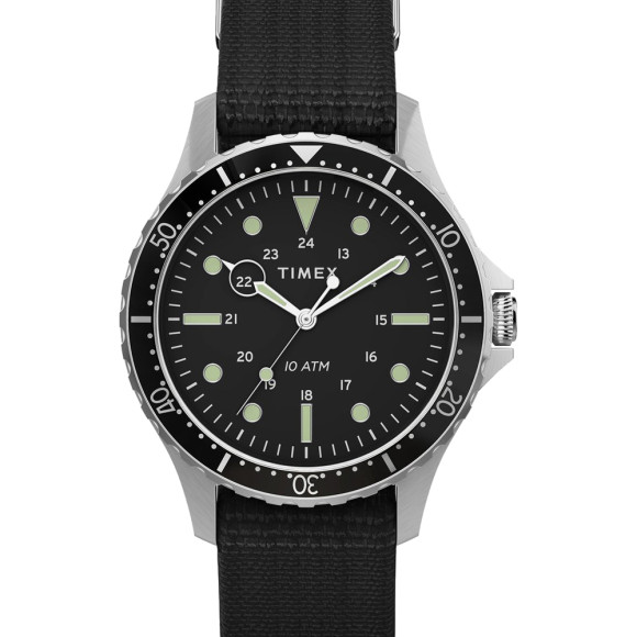 Het Timex Analogue 'Navi' Herenhorloge TW2T75600 vangt de essentie van avontuur en stijl. Dit duikershorloge is ontworpen voor de moderne man en combineert moeiteloos functionaliteit met een opvallende esthetiek. De robuuste zilveren behuizing van roestvrij staal, met een diameter van 41 mm en een dikte van 12 mm, garandeert duurzaamheid en biedt een klassieke ronde vormgeving die bij elke outfit past, of je nu op zee of op het land bent. De draaibare bezel voegt een robuuste touch toe, waardoor de duikcapaciteiten worden verbeterd en je volledige controle hebt over je onderwaterervaringen. De zwarte wijzerplaat is niet alleen stijlvol, maar ook praktisch, beschermd door mineraalglas dat zichtbaarheid in verschillende omstandigheden garandeert. Met een waterdichtheid tot 10 bar is het horloge perfect voor duikliefhebbers en degenen die houden van aquatische activiteiten. Het horloge toont de tijd in een gemakkelijk af te lezen analoog formaat, waardoor tijdwaarneming eenvoudig is. Een zwarte stoffen band, met een lengte van 21 cm en een breedte van 19 mm, zorgt voor een comfortabele en betrouwbare pasvorm met een stevige gesp. Met een gewicht van slechts 72 gram, is de Timex Navi perfect voor langdurig gebruik. Van de functionaliteit voor avonturiers tot de elegante stijlen, dit horloge is ontworpen voor mannen die zowel praktische als elegante elementen waarderen. Omarm je avontuurlijke geest met het Timex Analogue 'Navi'.Koop Timex® Analogue 'Navi' Herenhorloge bij Ormoda
