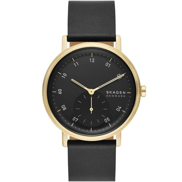 Het Skagen® Analogue 'Kuppel' Herenhorloge SKW6896 belichaamt moeiteloos verfijning en moderne stijl. Dit uurwerk is een bewijs van Skagens toewijding aan innovatieve ontwerpen en beschikt over een schitterende gouden roestvrijstalen kast die luxe uitstr straalt, maar ook veelzijdig genoeg is voor dagelijks gebruik. Met een diameter van 44 mm biedt deze ronde horlogekast een gedurfde uitstraling om de pols, terwijl de slanke 8 mm dikte zorgt voor een gestroomlijnd profiel. De zwarte wijzerplaat contrasteert prachtig met de warme tint van de kast en biedt een tijdloze esthetiek die geschikt is voor elke formele gelegenheid. Aangedreven door betrouwbare kwartsbeweging, zorgt het Kuppel-horloge voor nauwkeurige tijdmeting, wat een kenmerk is van Skagens toewijding aan functionaliteit. Het mineraalglazen wijzerplaatvenster beschermt het horloge, biedt duurzaamheid en toont het elegante ontwerp. Met een comfortabele zwarte leren band van 21 cm lang en 22 mm breed, ziet dit horloge er niet alleen goed uit, het voelt ook goed aan om te dragen. De klassieke gesp sluiting zorgt voor een veilige pasvorm, wat de praktische aard van het horloge verder versterkt. Met een waterbestendigheid tot 3 bar is de Kuppel niet alleen stijlvol, maar ook ontworpen om de uitdagingen van alledag aan te kunnen. Dit horloge is gemaakt voor mannen die een combinatie van moderne esthetiek en klassieke vormen waarderen, waardoor het een prachtige aanvulling is op elke garderobe. Of je nu op een zakelijke vergadering bent of een casual uitje hebt, het Skagen Kuppel-horloge straalt vertrouwen en verfijnde stijl uit zonder in te boeten op comfort of functionaliteit. Omarm elegantie en precisie met dit voortreffelijke uurwerk dat de essentie van Skagens vakmanschap en esthetisch vermogen belichaamt.Koop Skagen® Analogue 'Kuppel' Herenhorloge bij Ormoda