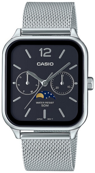 De Casio® Multi Dial 'Casio Collection' Heren Horloge MTP-M305M-1AVER is een verbluffende combinatie van stijl en precisie, ontworpen voor de moderne man. Met een tijdloze aantrekkingskracht die verder reikt dan vluchtige trends, vindt dit horloge moeiteloos zijn plek in elke casual setting. De slanke rechthoekige kast van roestvrij staal, met een lengte van 37mm en een breedte van 34mm, wordt aangevuld door een opvallende zwarte wijzerplaat die meerdere wijzerplaten bevat voor extra functionaliteit. Deze ontwerpkeuze verhoogt niet alleen de esthetische aantrekkingskracht, maar dient ook praktische doeleinden, waardoor het een ideale metgezel is voor zowel dagelijkse draag als speciale gelegenheden. Met een dikte van slechts 9mm biedt dit horloge een comfortabele pasvorm om de pols zonder in te boeten op duurzaamheid. De constructie van roestvrij staal zorgt voor veerkracht tegen dagelijkse slijtage, terwijl het zijn gepolijste uitstraling behoudt. Het vouwsluitsysteem voegt een element van gemak toe, waardoor je het horloge moeiteloos kunt omdoen en uittrekken. Met een bandlengte van 21cm en een breedte van 20mm past het horloge bij verschillende polsgroottes, wat het veelzijdig maakt voor elke gentleman. Een van de opvallende kenmerken is de dag-datum kalenderfunctie, handig gepositioneerd op de wijzerplaat voor een snelle referentie. Bovendien is dit model getest op waterbestendigheid tot 5 bar, waardoor het geschikt is voor onverwachte spetters en lichte wateractiviteiten. Het mineraal glazen wijzerplaatvenster voegt een extra laag bescherming toe tegen krassen, zodat je horloge in de loop der tijd onberispelijk blijft. Met een gewicht van slechts 84 gram is het lichtgewicht en comfortabel om de hele dag te dragen, waardoor het perfect past bij een actieve levensstijl.Koop Casio® Multi Dial 'Casio Collection' Heren Horloge bij Ormoda