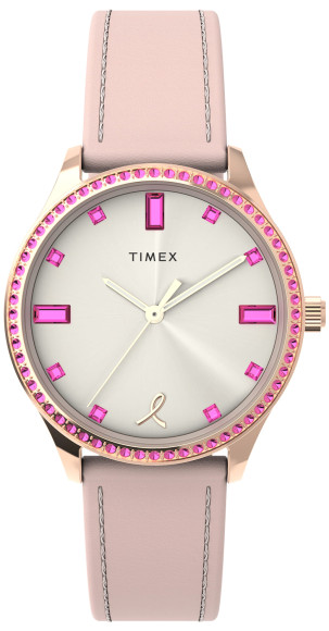 Opgericht in 1854, is Timex een merk dat synoniem staat voor tijdloze ambacht en innovatieve ontwerpen. Met een erfgoed van het creëren van duurzame horloges, is Timex een vertrouwde naam in de horloge-industrie geworden. Het merk is toegewijd aan het combineren van stijl met functionaliteit, het vastleggen van de geest van avontuur en de puls van hedendaagse mode. Elk Timex horloge wordt getest op duurzaamheid, zodat het kan voldoen aan de dynamische levens van zijn dragers. Of je nu elegantie of eenvoudige functionaliteit belichaamt, Timex horloges passen zich aan verschillende smaken aan en beloven niet alleen een horloge, maar een gekoesterd accessoire dat jouw unieke verhaal vertelt. Het merk zet zich in voor duurzaamheid en sociale verantwoordelijkheid, en maakt stappen om belangrijke zaken te ondersteunen, zoals de Breast Cancer Research Foundation, door middel van speciale edities zoals de Dress X Bcrf. Timex is meer dan alleen een merk; het is een filosofie dat tijd ertoe doet en elk moment gekoesterd moet worden.Over Timex® Analogue 'Dress X Bcrf' Women's Watch