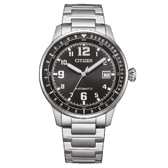 De Citizen® Analogue 'Urban Military' Herenhorloge NJ0190-51E is een perfecte mix van verfijning en robuuste functionaliteit. Dit indrukwekkende horloge beschikt over een automatisch uurwerk, zodat je altijd in sync bent met de avonturen van het leven. Het is vervaardigd met een klassiek ronde kast van roestvrij staal, wat niet alleen de aandacht trekt, maar ook duurzaamheid biedt die de dagelijkse slijtage doorstaat. Met een kastdiameter van 40 mm en een dikte van 12 mm, creëert het een perfecte balans tussen boldness en elegantie. Het horloge heeft een opvallende zwarte wijzerplaat, doordrenkt met een vleugje mysterie, beschermd door robuust mineraalglas dat krassen en slijtage weerstaat. De datumaanduiding op de wijzerplaat biedt extra functionaliteit zonder concessies te doen aan de stijl. De band van roestvrij staal, ontworpen in een stralend zilver, heeft een lengte van 21 cm en een breedte van 19 mm, wat zorgt voor een comfortabele pasvorm om elke pols. Beveiligd met een opvouwbare sluiting met drukknop, garandeert dit horloge dat het op zijn plek blijft tijdens je dagelijkse bezigheden. Met een waterbestendigheid tot 10 bar is het ideaal voor de moderne man die houdt van een actieve levensstijl, of je nu door stedelijke omgevingen navigeert of geniet van weekendavonturen. Het Citizen Urban Military horloge is niet slechts een tijdsaanduiding; het is een statement stuk dat vertrouwen en stijl uitstraalt, perfect voor elke gelegenheid, of het nu gaat om een zakelijke bijeenkomst of een informele uitje.Koop Citizen® Analogue 'Urban Military' Herenhorloge NJ0190-51E bij Ormoda