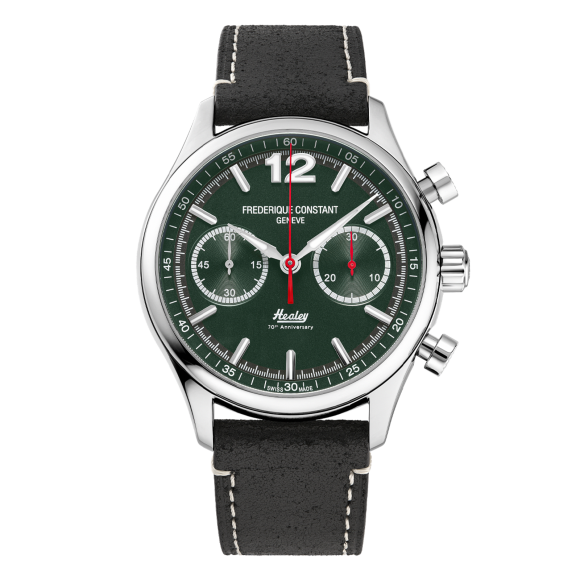Frederique Constant staat gelijk aan elegantie en precisie in de wereld van horlogemakerij. Sinds de oprichting heeft dit Zwitserse merk consequent de grenzen van luxe tijdpieces verlegd, met een onwrikbaar commitment aan vakmanschap, kwaliteit en innovatie. Frederique Constant omarmt de kunst van de horologie, waarbij traditionele horlogemakers technieken worden verweven met moderne flair en technologie. Elke creatie vertelt een verhaal van verfijning en passie, met aandacht voor detail die in elk facet zichtbaar is. Het merk is er trots op luxe te combineren met betaalbaarheid, en zorgt ervoor dat een opmerkelijk horloge binnen handbereik is voor zowel liefhebbers als verzamelaars. Hun toewijding aan het produceren van horloges die persoonlijke stijl weerspiegelen, gaat hand in hand met hun respect voor de erfenis van klassieke horlogemakerij. De collecties van Frederique Constant vieren zowel het individu als de rijke erfgoed van de Zwitserse horlogemakerij, waardoor elk horloge niet alleen een hulpmiddel voor tijdregistratie is, maar ook een waar kunstwerk.Over Frederique Constant® Chronograph 'Vintage Rally Healey Limited Edition' Herenhorloge