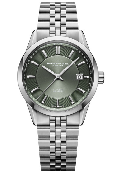 Het Raymond Weil® Analogue 'Freelancer' herenhorloge 2771-ST-52051 is een bewijs van tijdloze elegantie en onberispelijk vakmanschap. Dit prachtige horloge belichaamt de geest van onafhankelijkheid, zoals de naam al aangeeft. Ontworpen voor de kieskeurige gentleman, is de Freelancer niet alleen een horloge maar ook een statement dat vorm en functie naadloos samenbrengt. Het beschikt over een opvallende groene wijzerplaat, zorgvuldig beschermd door saffierglas, wat zorgt voor helderheid bij elke blik. De automatische beweging garandeert precisie, en houdt het ritme van uw dagelijkse leven moeiteloos bij.Koop Raymond Weil® Analogue 'Freelancer' herenhorloge 2771-ST-52051 bij Ormoda